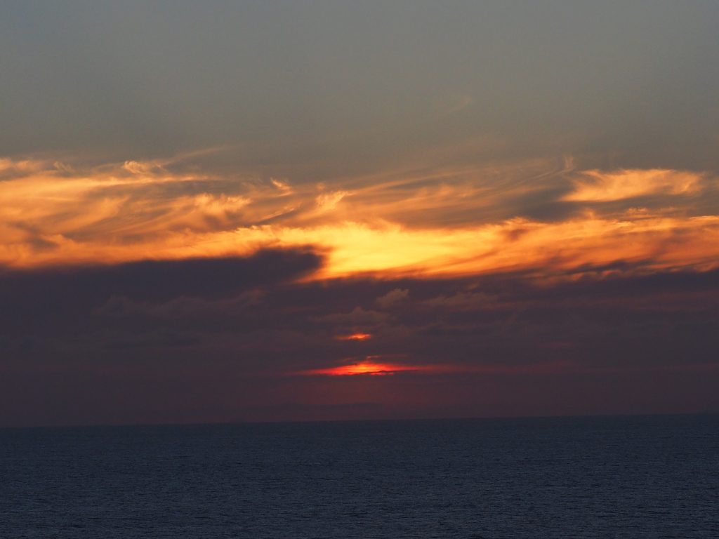 That afternoon Mother Nature put on a spectacular sunset for our last night on the ship! It was a truly epic sunset. It looked like the sun was dropping through the clouds like a molten coin. And then it hit the water and was gone.