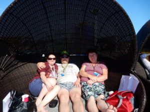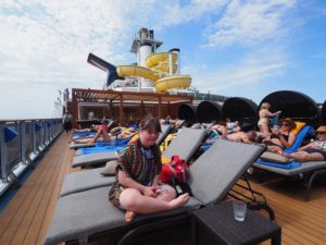 While Silvia and Kylie were at the Art Auction, Chloe and Peter were soaking up some rays and enjoying the pool on the Serenity deck, where we joined them after the art auction and managed to snaffle a cabana (which didn’t happen again for the rest of the trip by the way! Cabanas were very popular, get there early if you want one).